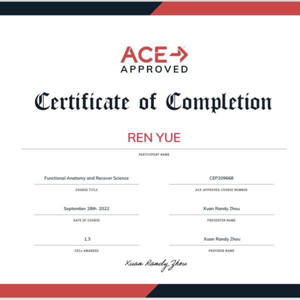 ACE and NSCA approved certificate