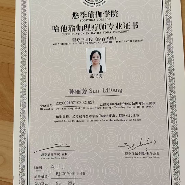 2017年9月在悠季瑜伽学院完成了瑜伽理疗培训!