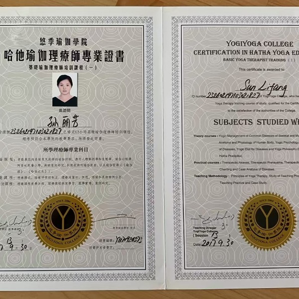 孙丽芳:毕业于印梵希瓦和悠季瑜伽学院,系统的学习了体式,理论,生理解刨学,清洁法,呼吸控制法,以及阿育吠陀养生学!