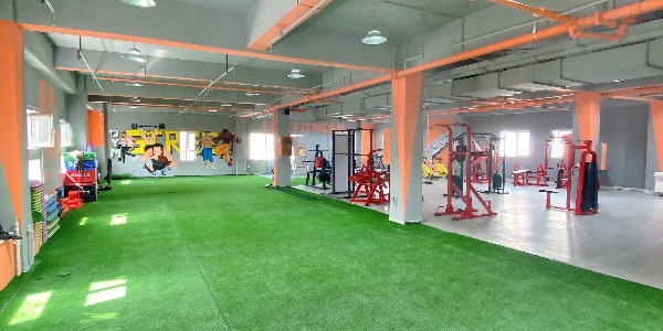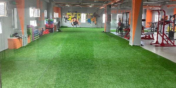 店面500平,200平米超大草坪适合多方位多角度综合体能训练,20台悍马力量器械保证您的训练强度,打造您完美身材